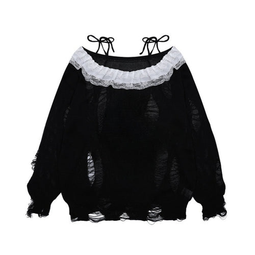 Elegant Lace Patchwork Black Sweater